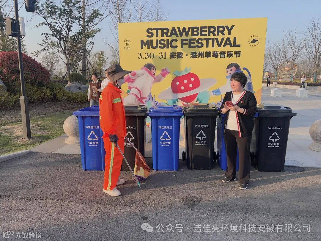 2024年3月30日-3月31日,安徽滁州草莓音乐节活动在明湖公园激情开演。为给广大乐迷营造干净整洁、舒适清爽、规范有序的活动氛围,洁佳亮公司提前谋划,精心部署,层层落实,活动期间洁佳亮环境明湖分公司全力以赴,圆满完成草莓音乐节卫生保障任务!