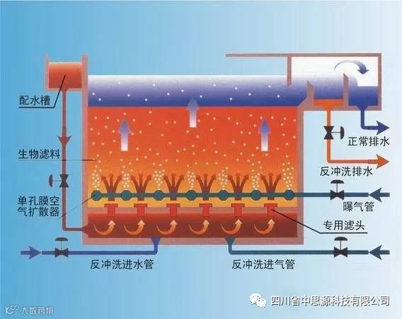 (3)水往下、气往上的逆向流,节省了后续沉淀池;