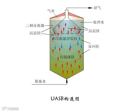 1.概念:上流式厌氧污泥床反应器是一种处理污水的厌氧生物方法,又叫升流式厌氧污泥床,英文缩写UASB(Up-flow Anaerobic Sludge Bed/Blanket)。由荷兰Lettinga教授于1977年发明。
