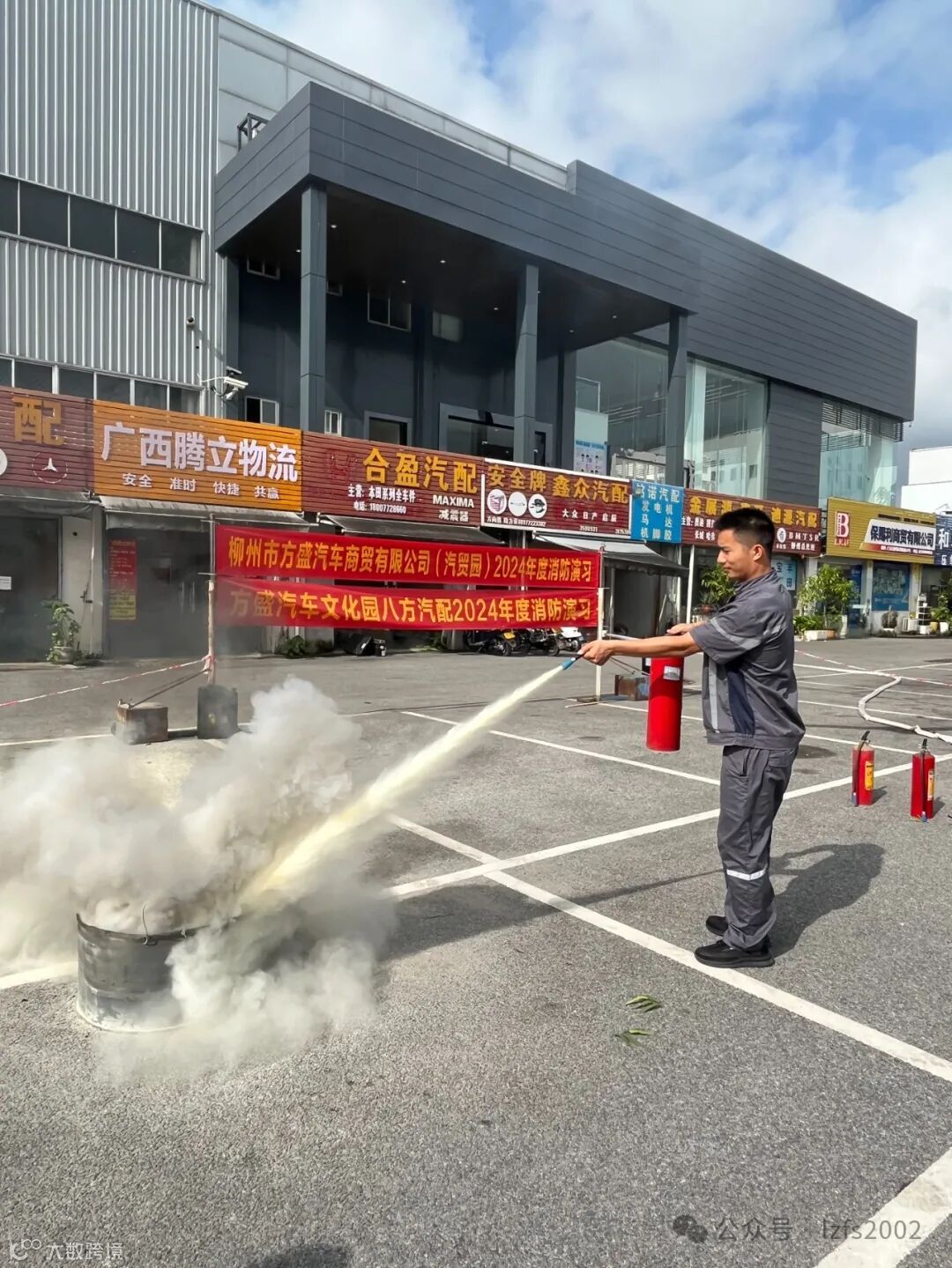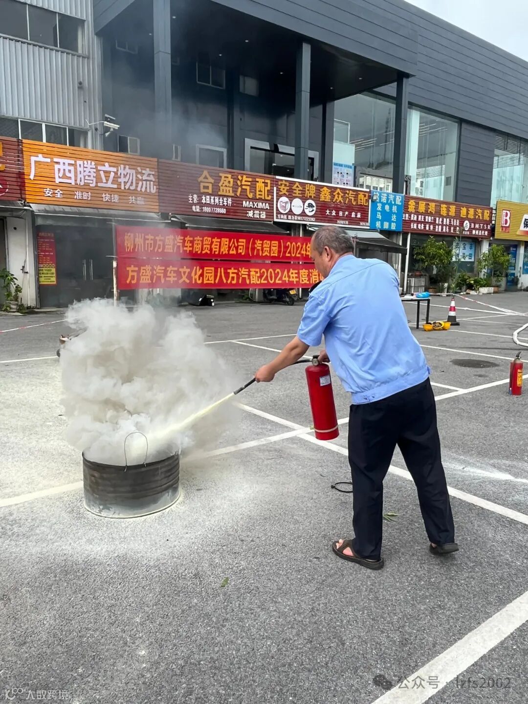 线上学习完毕,特在方盛盛鹏配件公司、方盛汽车文化园分批开展消防安全演练活动。方盛汽贸公司安全负责人徐炯育对日常消防常识、消防器材的使用进行了详细讲解和示范。
