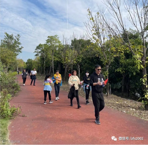 大家迈着轻快的步伐前进,途中相互鼓励,你追我赶,陆陆续续到达打卡点。
