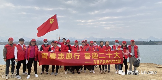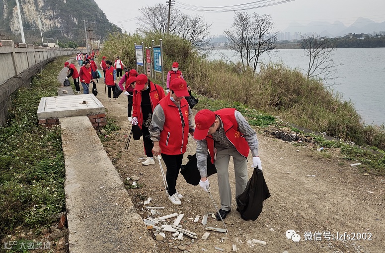 3月4日上午10点,支部党员代表及公司员工组成志愿服务队,身穿红马甲,随身携带夹钳、垃圾袋等工具,沿着柳江干流麒麟街道河畔徒步清理岸边、草丛中散落的垃圾,身体力行地为保护柳州母亲河尽一份力。