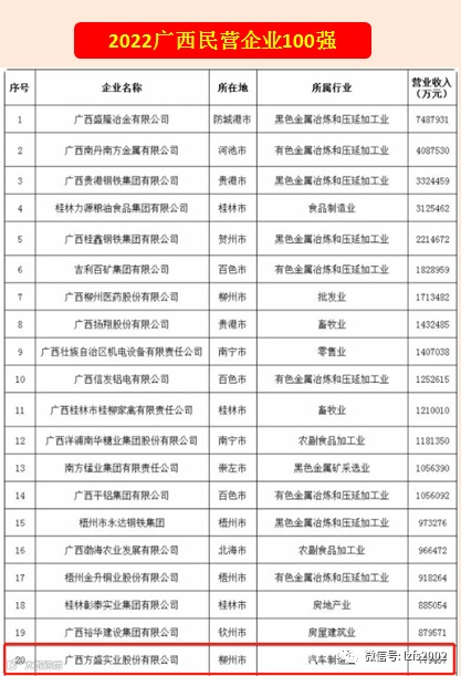 “2022广西民营企业制造业100强”