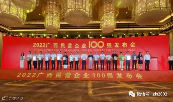 9月6日,由自治区工商联、柳州市人民政府主办的2022广西民营企业100强发布会在柳州举行。会议发布了“2022广西民营企业100强”“2022广西民营企业制造业100强”“2022广西民营企业纳税10强”“2022广西最具竞争力民营企业”“2022广西最具潜力民营企业”等5个榜单。