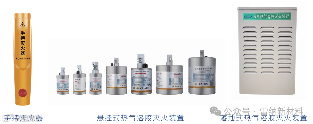 热气溶胶灭火剂产生的气雾,通过气相与固相的化学抑制作用、吸热分解的降温作用、降低氧浓度作用中断燃烧,抑制火源。具有灭火高效、安装维护成本低、环保无害等优点,主要适用于扑救A(固体)、B(液体)、E(带电物质)、F(烹饪物)类火灾,应用于家庭、车辆、配电柜、电缆井、通讯机房、博物馆、资料库等场所。