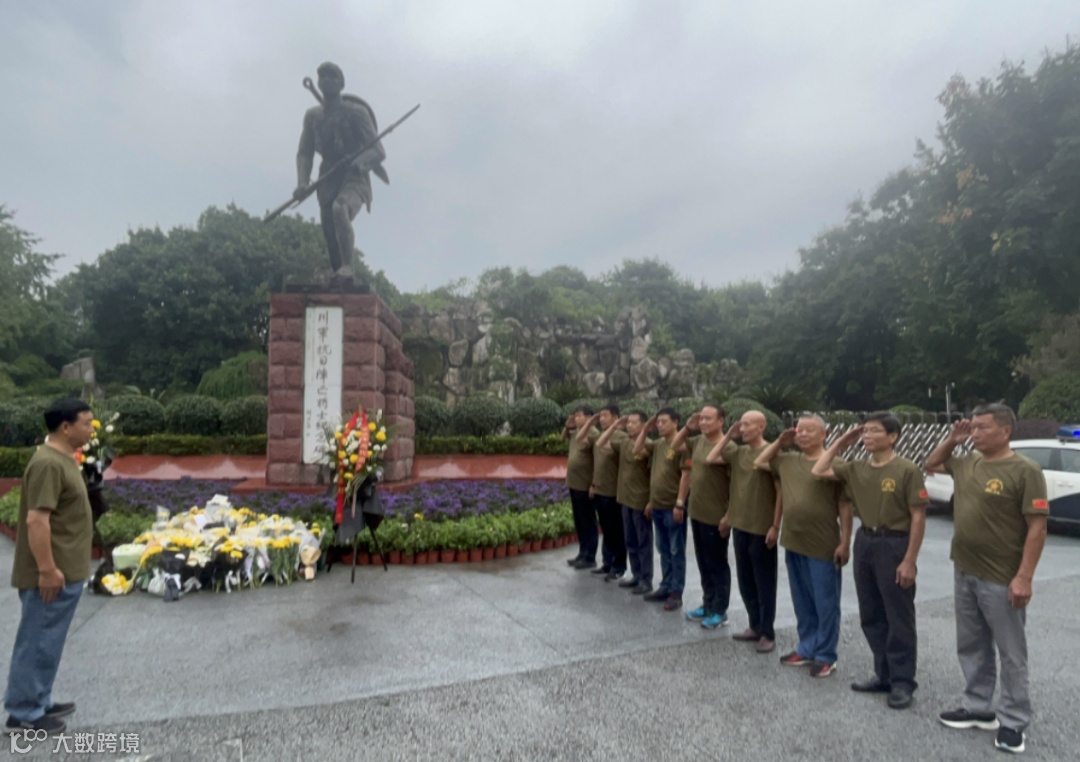 早上九点,在成都生活的老张和他的19个战友来到人民公园。40多年前,他们都在原沈阳军区守备第七师炮兵团当兵。今年9月份,来自黑龙江、辽宁、吉林、山东的战友们赶来成都参加战友聚会,恰逢“九一八”,战友们约好,一定来看看,纪念革命先辈。