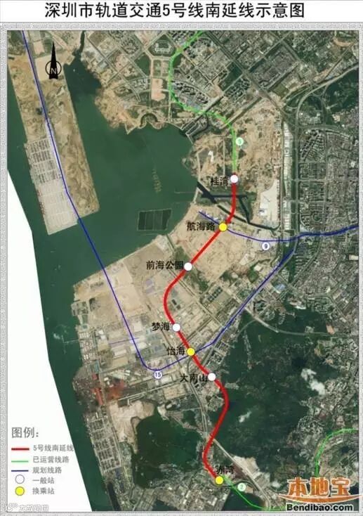 地铁5号线南延段项目北起于5号线前海湾站,经前海、南山,终点与地铁2号线赤湾站换乘,途径前海片区,线路全长约7.7公里,全线地下敷设,设站7座。