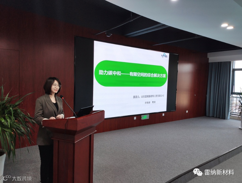 在主旨演讲阶段,山东雷纳新材料工程有限公司市场部樊琪就“助力碳中和——有限空间的综合解决方案”为主题登台进行演讲。演讲时妙语连珠,用案例和数据为现场观众奉献了一场知识和思维的盛宴。