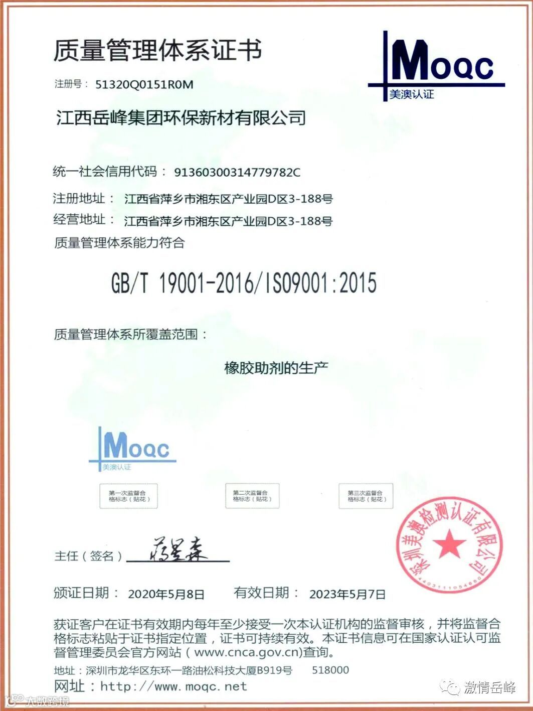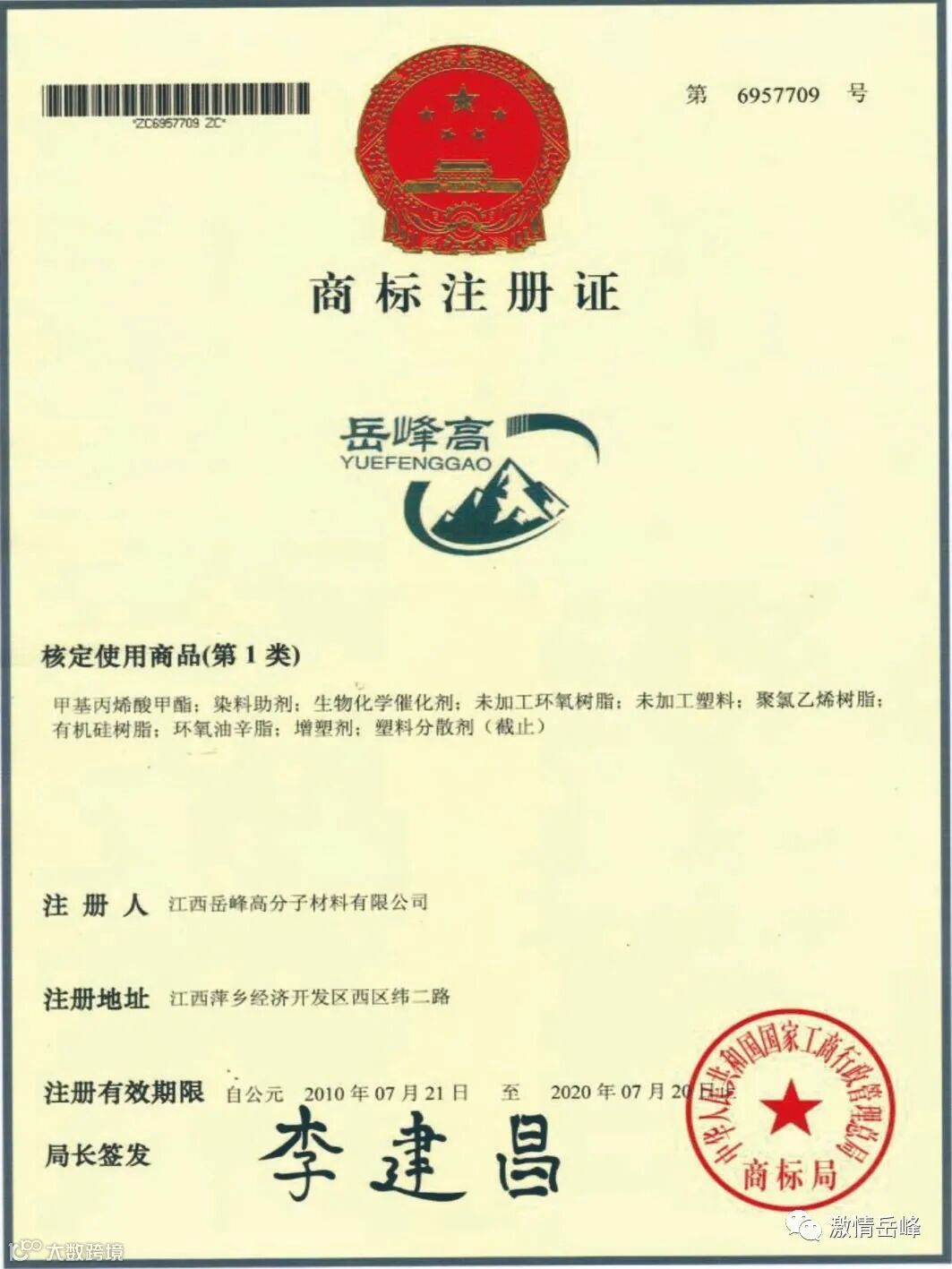 公司通过ISO9001:2015质量体系认证,专注于生产“岳峰高”系列产品,ACR、发泡调节剂、MBS、丁腈胶乳、丁苯胶乳、ABS高胶粉、改性塑料、电解液、聚甲醛特种工程塑料等达十多个品种。产品均已通过SGS检测认证。