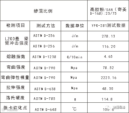 做通用级特种ABS,可以与SAN直接掺混造粒,推荐使用大庆SAN-327、国亨SAN-168,因为它们的腈含量和高胶粉匹配性最好,符合相似相容规律。掺混比例一般在23-28:77-72,即可达到理想的物性指标(其它助剂按正常配比加入,内部润滑剂0.8-1.0,外部润滑剂0.5左右,抗氧剂0.3左右)。
