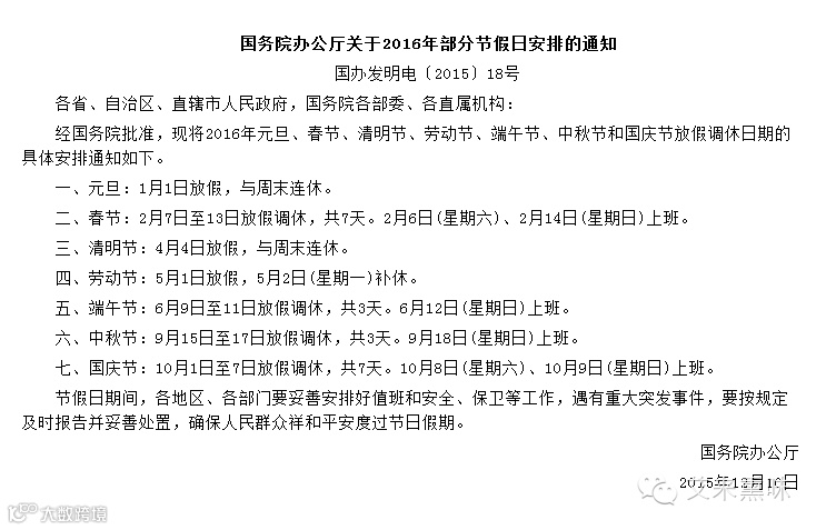 导读:实在不忍心告诉大家这个事实 : 2015所有的假期已经全部休完了,只能寄希望2016咯。。。。。。。