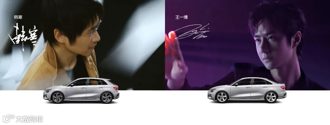 而在关键名人的选择上,韩寒的赛车手身份与王一博顶流偶像的潮流形象,完美契合新奥迪A3两款车型——热血运动的A3 Sportback与年轻时尚的A3L Limousine。