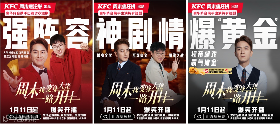 肯德基(KFC)推出让人主动追更的电子榨菜——自制36集贺岁短剧。TVB视帝与脱口秀黑马同台飙戏,商战爽文高潮迭起,广告植入猝不及防,3秒上头、5秒反转,更是让大家一手掌握时下热梗,拥有周末聚会谈资。