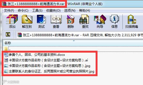提交压缩文件模板(压缩文件名:主要联系人姓名+联系电话+设计作品名称)