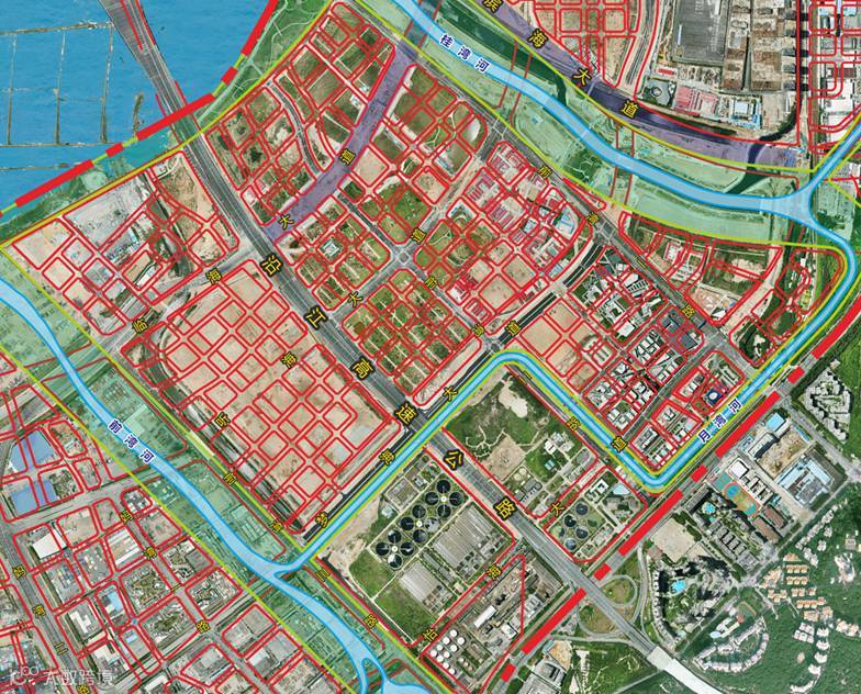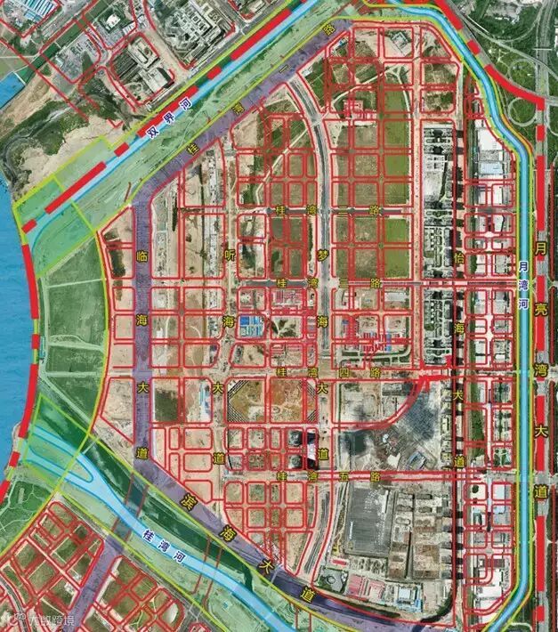最靠北的桂湾片区,从航拍图可以看出,大片的在建工地,依稀还可以看见坐落在梦海大道旁边的前海卓越双子楼。