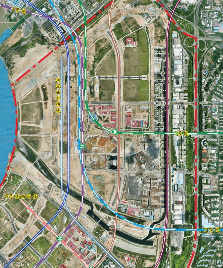 此前常说前海未来四通八达,这都是有依据的。从上图就可以看出,如此繁多的轨道交通穿过前海,不四通八达才怪。