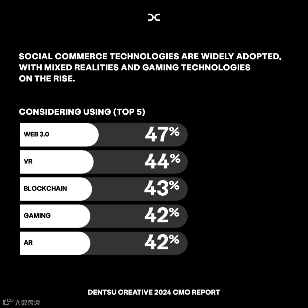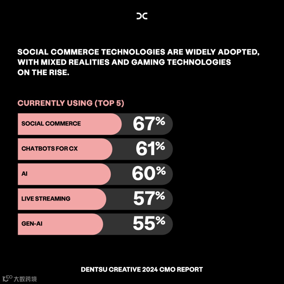 The power of culture and community is also impacting the worlds of commerce and customer experience. The boundaries between content and commerce have never been more blurred as commerce platforms, social giants and entertainment platforms alike pursue the Holy Grail of shoppable, culturally resonant, and creator-led content. Netflix Shop is committed to bringing the streamer’s most beloved platforms to fans through retail. Amazon Live is embracing a creator-led approach to commerce, while TikTok Shop aims to make its infectious video content shoppable. China has long led the way in this space with platforms such as Taobao and Ten Cent live contributing to a live streaming industry generating $562.62 billion in revenue in 2023. Stories are shoppable, and stores can tell stories. As a result, and in response to the rapid commoditization of products and experiences, today’s CMOs need every customer experience to be a brand experience. As product advantage is easily replicated, and competitors only ever a click away, brands will seek to add value and differentiation through an ecosystem of digital services and experiences. 79% of CMOs agree that brands today are built through experience, while 75% agree that every touchpoint can and must tell the brand story-from comms to commerce. 63% agree that technologies such as Live Streaming have blurred the boundaries between content and commerce, while 80% agree that digital experiences will become increasingly important in physical stores. The key characteristics of a creative brand experience CMOs identify are Technology that enhances the creative idea (66%), Intelligent personalization to surprise and delight (56%), Useful Customer Experience Support (55%), Innovative new interfaces (51%) and a Powerful Organizing Idea (51%). We have been tracking these metrics for a number of years in our study; while growth has been steady over time this year we see a leap forward in the importance of personalization (+13%), and technology that enhances the brand idea (+16%). Yet despite the importance they place on creativity and innovation, CMOs feel that many experiences remain purely functional. 62% agree that brands have improved the functional convenience of their customer experience, but not the creative expression. Among the barriers that stand in their way are lack of data and technical infrastructure, and an inability to find partners with the craft skills to finesse every touchpoint. To overcome these obstacles, brands will need not only a powerful and distinctive experience vision, but the ability to implement the data, technology and content stack that makes the vision a reality. Despite the challenges, CMOs are investing in a host of new technologies aimed at delivering immersive, distinctive and delightful experiences. In the converging worlds of content and commerce, it’s unsurprising to see that social commerce has the highest levels of adoption among CMOs worldwide, followed by Chatbots for customer service, AI and Live Streaming. The technologies CMOs are most likely to adopt in the future include Metaverse/Web 3.0 technologies, Mixed Reality and Gaming; all technologies where the right craft partner will be an imperative. It will be intriguing to see how these technologies converge, bringing AI and metaverse technologies to bear in the world of social commerce and streaming. Our Dentsu VI platform is an example of where brands may choose to innovate in this space, combining influencer marketing with AI to create a suite of virtual influencers and ambassadors. The content of this article is sourced from the DENTSU CREATIVE 2024 CMO REPORT. Now in its fifth year, the annual study is conducted to provide insight into the hearts and minds of CMOs globally, to help benchmark their direction against peers, and support them developing their creative, experience and innovation roadmaps. To form the CMO Report, the responses to 45 questions posed to 950 CMOs in Australia, Brazil, China, Canada, Germany, Italy, India, Japan, Mexico, Saudi Arabia, Spain, the UAE, US and UK. Eight key themes have been identified to offer an indispensable industry toolkit and roadmap, this year calling for agencies to not only respond to briefs but also to challenge them and drive transformative change. TO READ THE 2024 CMO REPORT IN FULL, PLEASE DOWNLOAD FROM THE DENTSU CREATIVE GLOBAL WEBSITE. www.dentsucreative.com/news/dentsu-creative-cmo-survey-2024 -ENDS- TAP TO READ MOREDentsu Creative 2024 CMO Report From Share of Voice To Share of Culture | CMO REPORT From Omnichannel to Omnipresent Creativity | CMO REPORT Unlocking Gen Z 2024 China Focus: A Multi-Dimensional Generation 2024 Unlocking Multifaceted Wellness: China Focus Dentsu Creative Trends Report 2024: The Futures Less Traveled DENTSU CREATIVE 2023 CMO Report: Creativity at a CrosswordsDENTSU CREATIVE 2023 Trends Report: A Tale of New Cities Introducing Dentsu's 5-Power in Creating Health & Wellness dentsu Z decodes luxury brands’ crossovers with Campaign Asia Pets, Tech, Eco-product, Subculture: Latest Gen Z Updates dentsu Z Looks into the World of a Generation of Contradictions