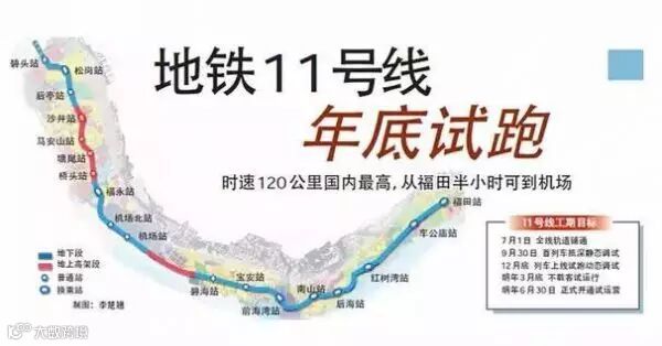 据悉,11号线于2010年底动工,起始站为福田站,终点站为碧头站,全长51.936公里,是目前国内一次性建成线路最长、投资规模最大、设计时速最高的城市轨道线。11号线连接福田中心区、南山、前海、机场、松岗等片区,是城市核心区与西部滨海地区的组团快线,同时兼有机场快线的功能。
