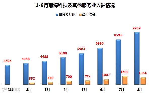 1-8月前海科技及其他服务业入驻状况