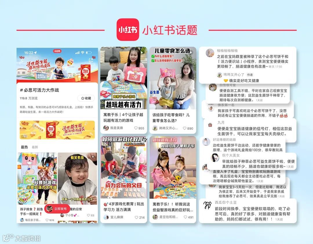 我们为处于导入期的必思可铺开多平台流量,打造针对性玩法。配合朋友圈信息流广告、知乎专业合作,我们传达必思可“活性益生菌添加”差异化健康小饼干定位。而在小红书、微博等社交平台上,亲子KOL纷纷现身说法,晒出与自家孩子共玩游戏棋的有爱实录,圈层种草推动必思可的健康品设深入人心。