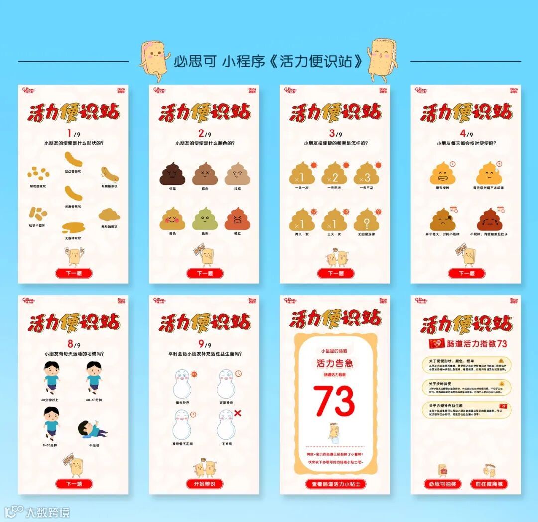 此外,我们还上线“活力便识站”小程序,帮助妈妈们基于便便状态比如形状、颜色、次数等感知肠道健康与饮食对于孩子成长的重要性,并给出相应饮食建议。