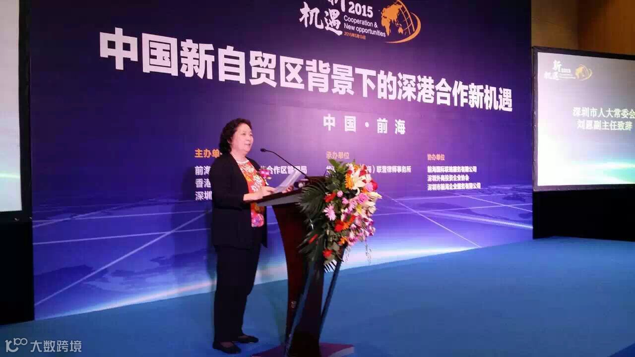 最后,深圳市人大常委会副主任刘恩登台致辞。她表示,深港合作是前海开发的最重要命题,今年是深圳经济特区成立35周年纪念,深圳发展的35年,也是深港合作的35年,深圳创造了奇迹,深圳的经济发展进入了新的领域。深圳是一片创业的热土,过去我们听到的是蛇口的“开山炮”,今天我们聆听的是前海的“前海潮”。她希望大家借助今天这个机会,积极探讨如何进一步利用自贸区优势,通过扩大对香港的开放,深化服务业领域合作以及人才的交流,创新深港开发建设模式等途径,去探索粤港合作的新路子,打造深港联合竞争的优势。