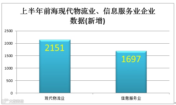 高端服务业稳步增长:6月份,入驻前海的现代物流业企业新增607家,上半年实现新增2151家,总数达5183家,较年初(3032家)增长70.9%;入驻前海的信息服务业企业实现半年新增1697家,总数达3994家,较年初(2297家)增长73.8%。