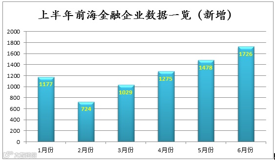 金融业数据领跑:金融创新是前海承担的发展使命,也是前海重点改革方向。随着自贸区的挂牌,前海迎来了推动金融创新发展的政策叠加优势,在此影响下,金融类企业保持良好发展速度。上半年,入驻前海的金融业企业新增7389家,其中6月份新增1726家,总数达18848家,较年初(11459家)增长64.4%。