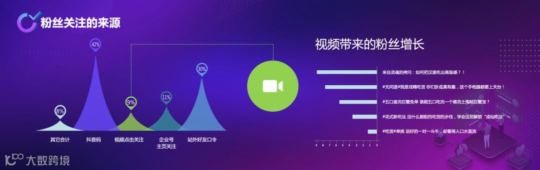 陈建豪认为粉丝的增长是企业号运营的指标之一,而品牌客户一直以来只能知道粉丝数量发生变化,但没有办法知道粉丝是从哪里来的,因此便无从得知最佳的粉丝增长的方式。使用抖音开放平台接口,在我们的抖音自媒体系统里,会可视化呈现不同推广渠道的粉丝关注来源比例,并且可以进一步查看每一个推广渠道、每一个视频带来的粉丝关注详情。