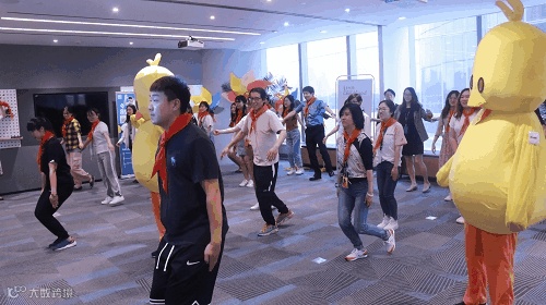 此时此刻此地的我们仿佛回到12岁不谙世事的小孩,鲜红的红领巾搭配最朴素却青春的白色上衣和牛仔裤,我们看到了大家最年少最幸福的模样。感谢公司,给大家在劳累的生活中加入一些轻松的调剂。