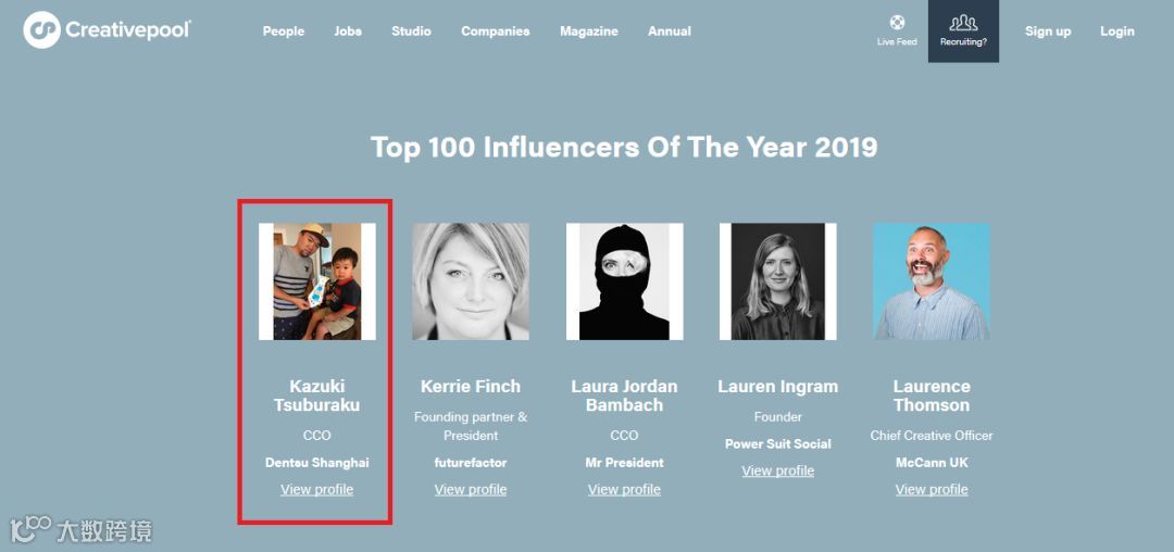 5月1日,英国视觉创意平台Creativepool公布了其“Creativepool Annual 2019”各奖项结果,北京电通上海分公司CCO / CDC China执行总监津布乐一树入选“Top 100 Influencers of The Year 2019”榜单。