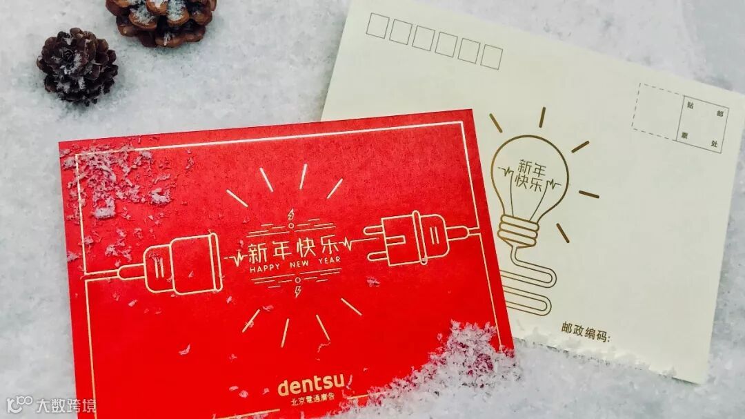 俗话说,新年新气象,北京电通也特地为自己创造了一个新的趣味形象——“通电”,金红配色的贺卡寓意新的一年红红火火。