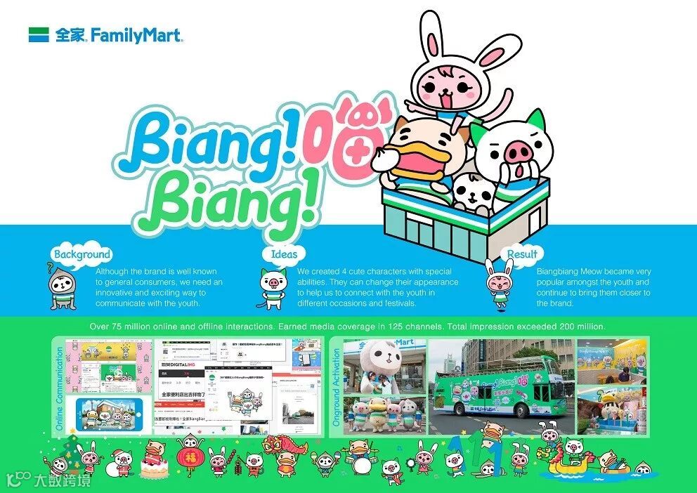 银奖作品《全家吉祥物“biangbiang喵”上线项目》是由北京电通上海分公司为顶新集团全家便利店设计的四只萌宠,吸睛的萌造型,逗趣又鬼马的个性演出,让四小只一推出便受到广泛关注。