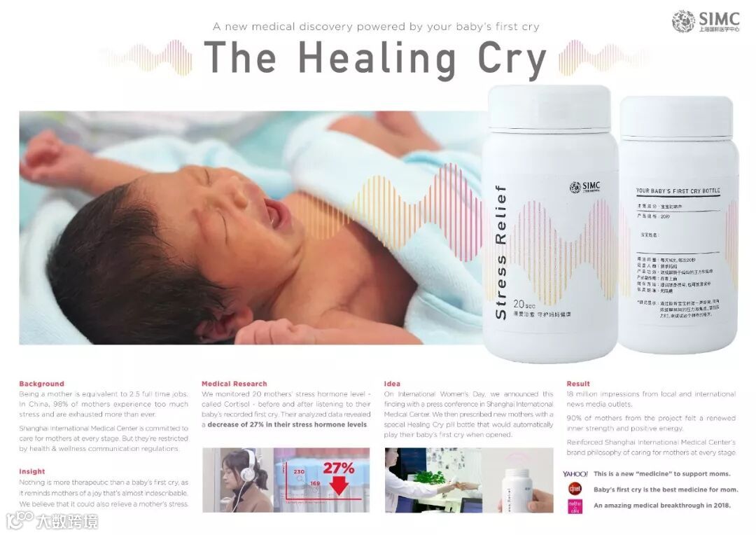 2018年度最佳华文创意入围作品名单也于近日公布,北京电通作品《治愈初啼声The Healing Cry》入围,最终获奖名单将于11月5日出炉。