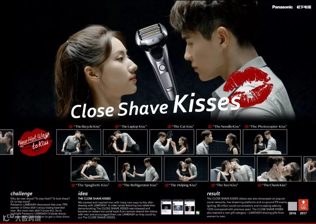 我们为松下剃须刀打造的“Kiss Lesson 轻吻课堂”,提示男士们在生活中可以利用各种机会给女生惊喜和爱护,让甜蜜的爱情在平淡生活中充满新鲜和快乐。当然,前提是拥有干净整洁的面容才行,而松下剃须刀可以更好的解决这个问题。