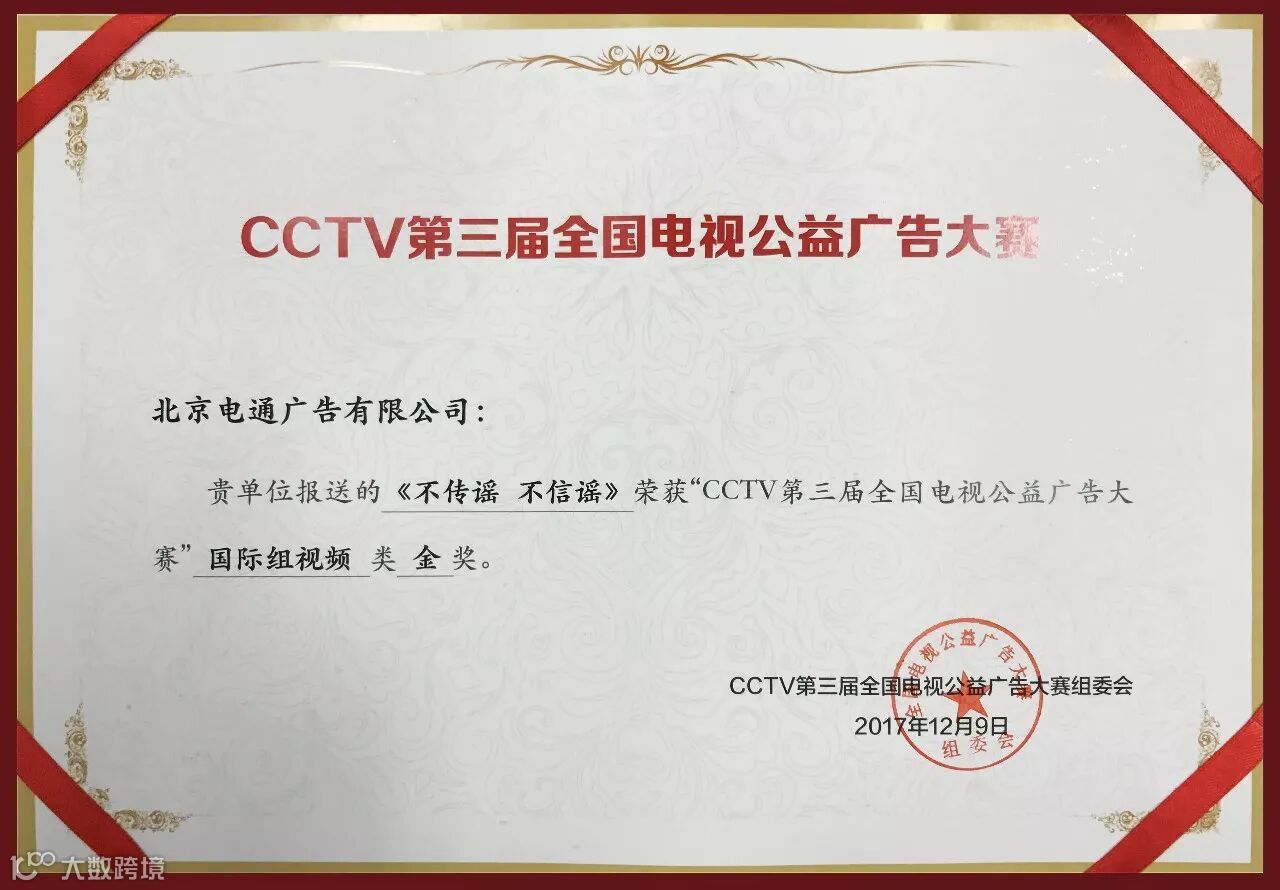 北京电通凭借作品《不信谣、不传谣》获国际组视频类金奖,作品创作团队代表创意策划中心创意总监田岗等人代表公司到现场接受了这份荣誉。