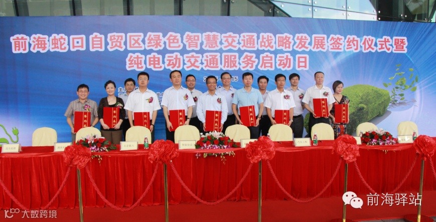 今日上午,前海蛇口自贸区绿色智慧交通战略发展签约暨纯电动交通启动仪式在前海企业公馆特区馆前广场举行。仪式上签署多项合作协议,深圳前海绿色智慧交通创新联盟宣告成立,前海的交通体系建设呈现产、学、研、用互动新格局,纯电动交通服务体系同日全面启动。