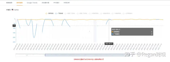 可以分析得到这个关键词在自然订单排名稳定的情况下,广告推广慢慢的撤下来,不再维持在首页中上部分。