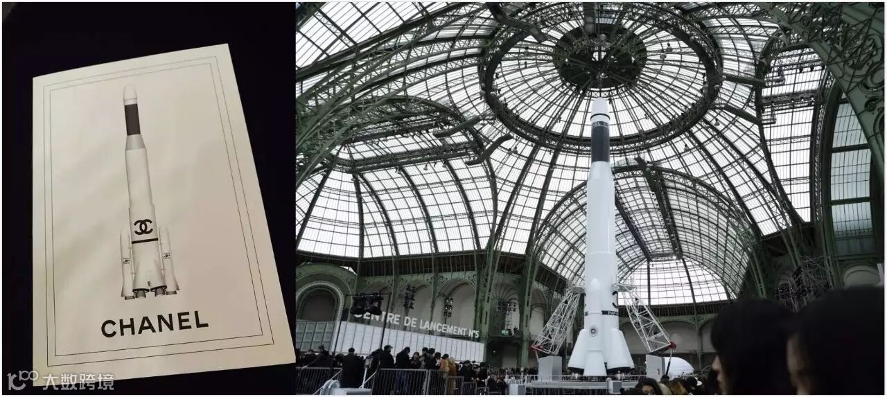 今年香奈儿的时装秀,以火箭升空为主题,在巴黎皇宫装上了一枚30多米高,“货真价实”的火箭,走秀结束,模特儿们出场谢幕时,火箭居然真的点火升空了!