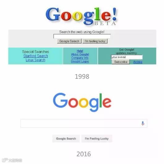 为了达到这个条件,在后台仰赖的是“算法优化”的程序设计,智能化学习顾客需求,快速且简单地回应需求才是王道。而面对消费者的页面,必定是最简单模式,如同Google的页面,从1998年进化到2016年,虽然后台的技术日新月异,但页面设计却是日益精简。