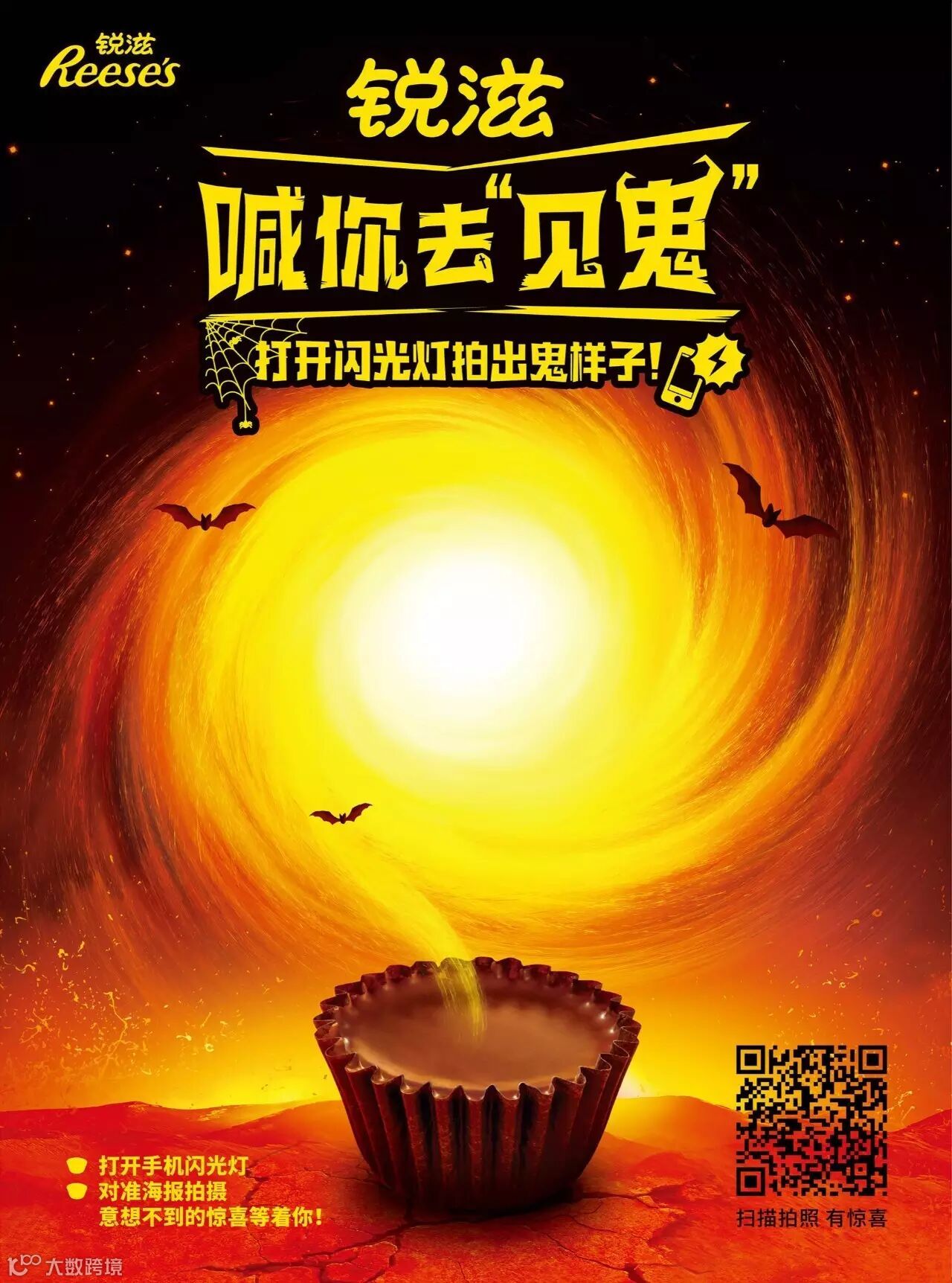 在加拿大的一个魔术节上,有一张“空白”的海报,用手机闪光灯拍照之后,图片上会呈现出很多东西,比如鸽子、动物,这张照片相当于一张入场券,主办方通过这样的方式送门票。感光技术做海报对国内广告公司来说,是一个还未尝试过的新技术。在M看来,新有两种定义,一是完全做新的开发,二是还没有做过。在好时锐滋巧克力万圣节的海报制作上,M的团队首次尝试了感光拍照技术。