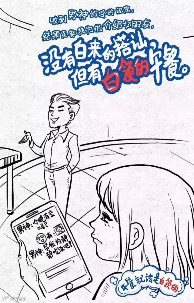 配合病毒海报和社交话题——没有白来的事儿,但有白领的午餐,让消费者第一时间了解兴业银行白领午餐计划。