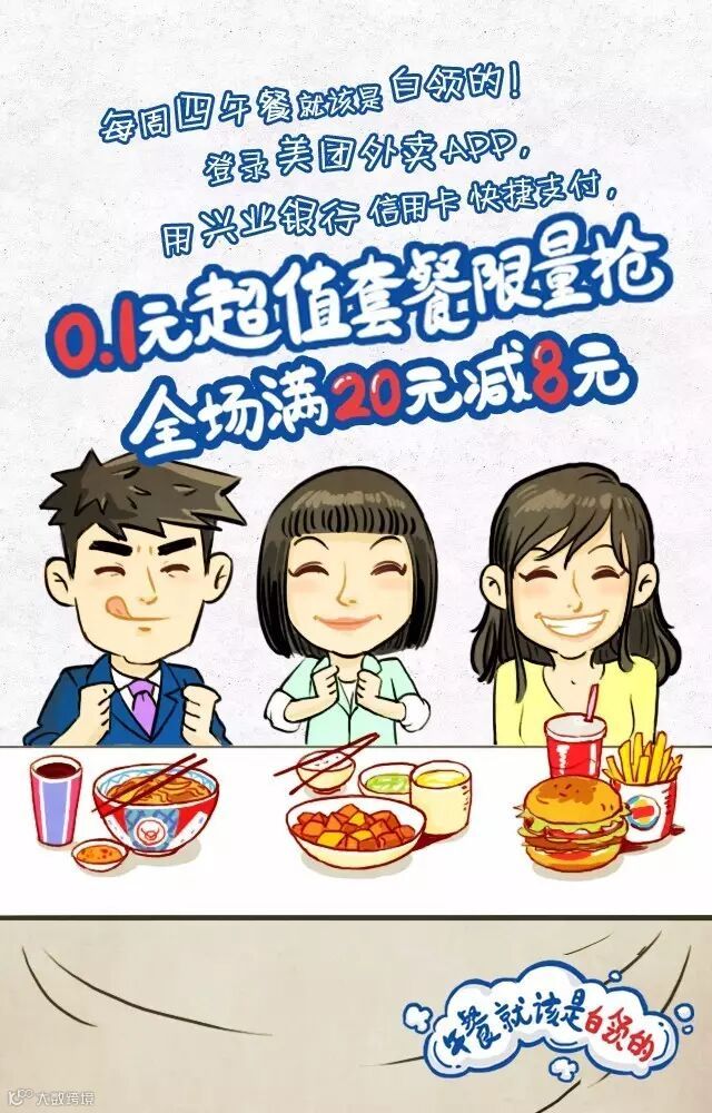 安索帕集团公司欧安派通过一系列创新多元、妙趣横生的创意传播,助力兴业银行信用卡联合“美团外卖”推出的“白领午餐”活动,为饱受纠结困扰的白领一族献上“白领”的午餐!