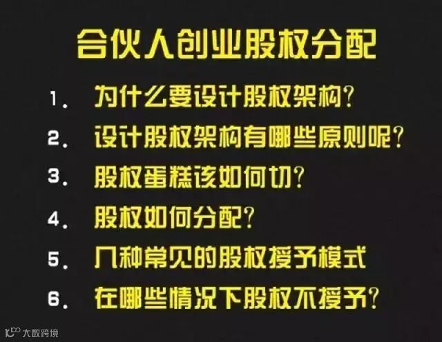 刚才讲到的,带头大哥要拿比较大的股权,比如说按6:3:1、7:2:1这样明显的股权梯次,才能形成贡献度的考量以及掌握控制权、话语权。