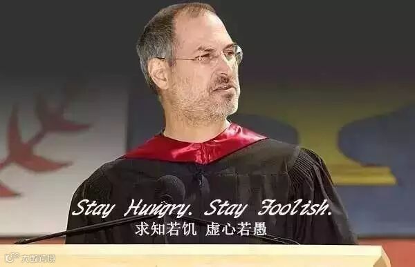 Stay hungry. Stay foolish.(求知若饥,虚心若愚。)