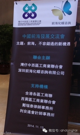 本次活动是首批前海招商合伙人之一的深圳前海化蝶咨询有限公司基于推广与宣传前海,配合前海招商引资的需求,联合香港各大商会、专业机构专门为港资港企举办的前海主题活动。本次活动的成功举办,为港资港企了解前海提供了直接与便捷的渠道,提供了前海产业政策及发展方向的专业指导与分享,相信在此基础上将帮助港资港企从不同层面更加深入了解前海、更加结合自身新发展在前海谋求新局面起到积极的作用,有效吸引更多港资港企入驻前海,依托前海实现深港互动大发展。