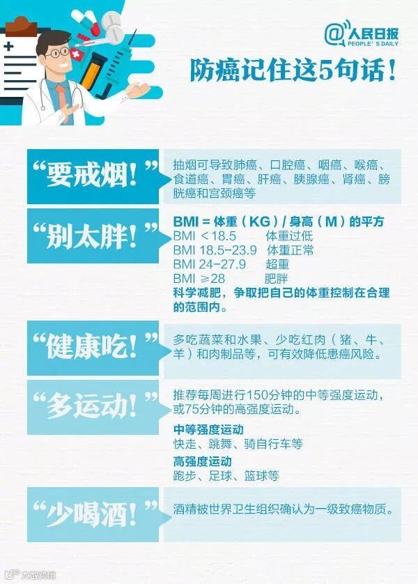 为了不再让家人担心,为了常伴他们左右,你也一定要好好珍惜身体。预防癌症,有这么几点,我们可以做: