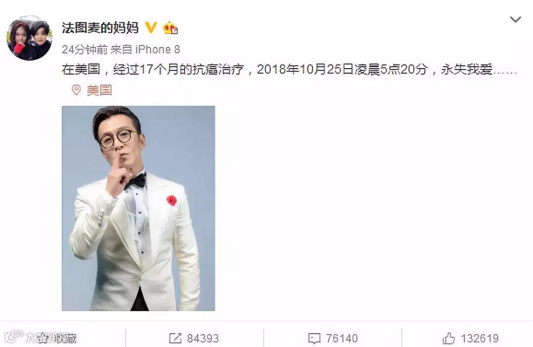 今天一早,朋友圈就被一个消息刷屏,哈文发文称丈夫李咏因病去世。短短一句话,是说不出的感伤:“在美国,经过17个月的抗癌治疗,2018年10月25日凌晨5点20分,永失我爱。”