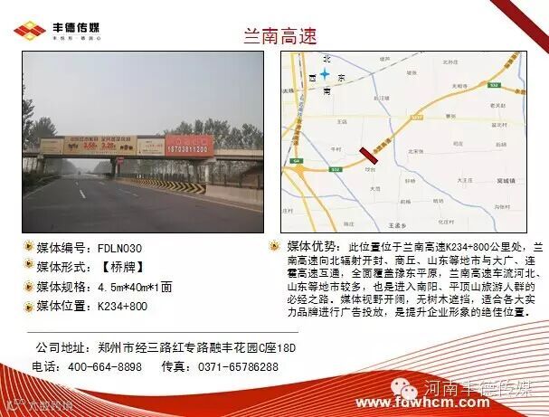 导读: 媒体编号:FDLN030媒体形式:【桥牌】媒体规格:4.5*40*1面媒体位置:K234+800