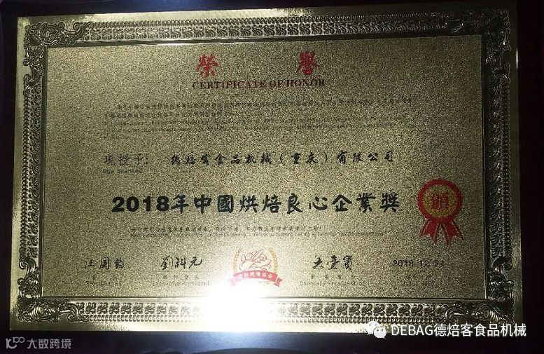 “2018年中国烘焙良心企业”称号对于DEBAG德焙客食品机械(重庆)有限公司来说,既是褒奖,更是鞭策。